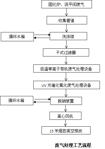 我公司采用洗滌塔預(yù)處理+干式過濾器+低溫等離子+UV光解催化+脫硝裝置主體工藝,治理貴公司氟碳生產(chǎn)線固化爐廢氣。